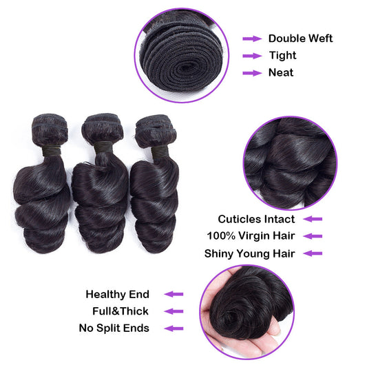 Loose Wave Virgin Human Hair Natural Black Bundles